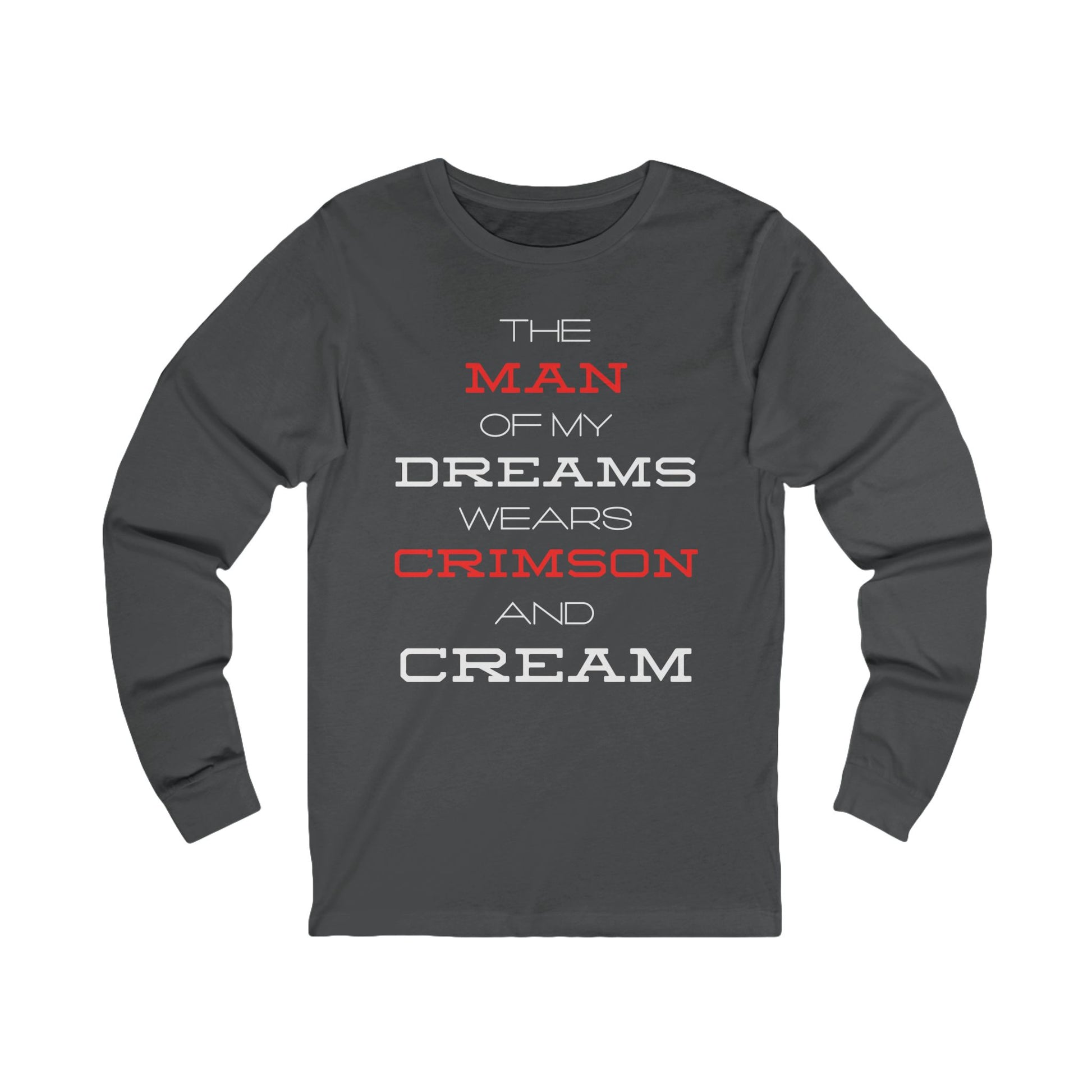The Man of My Dreams Wears Crimson And Cream Long Sleeve T-Shirt