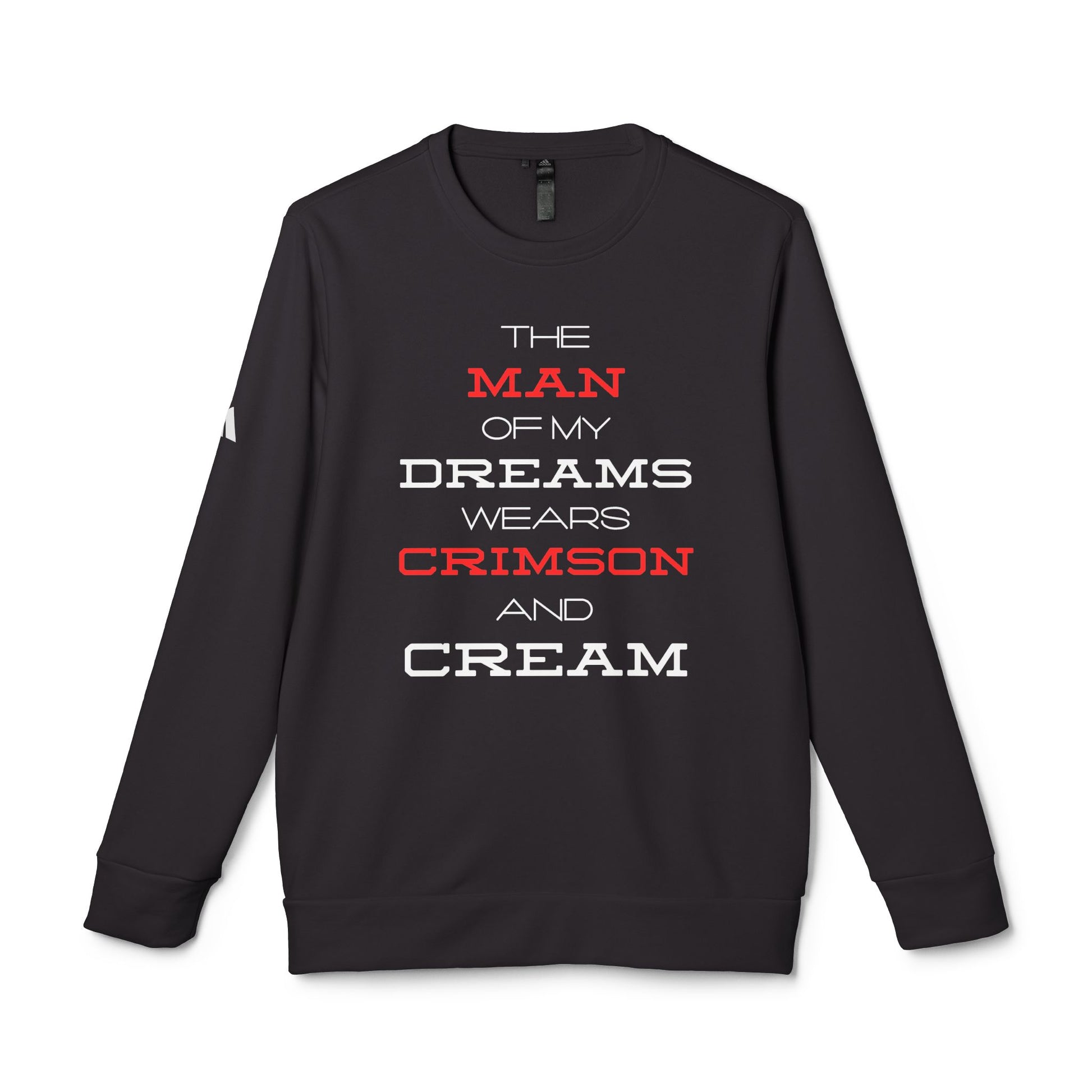 The Man of My Dreams Wears Crimson And Cream Long Sleeve Adidas Sweatshirt